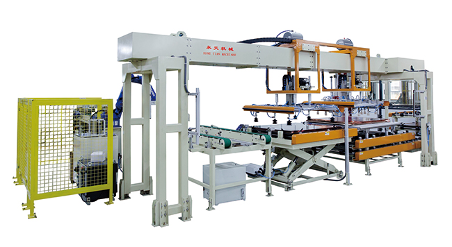 1、自动化叠合采用上下铜箔裁切一体式设计,节省空间,减少铜箔与空气氧化时间,用最短的时间完成三明治组合;